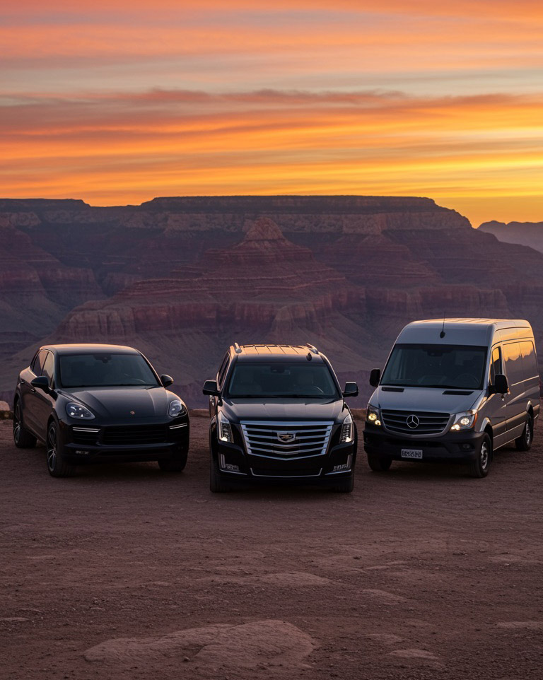 Discover the breathtaking beauty of the Grand Canyon with our exclusive tours departing from Las Vegas. Travel in style and comfort aboard our premium vehicles—choose between the sophisticated Porsche Cayenne, Cadillac Escalade or the spacious Mercedes-Benz Sprinter.
